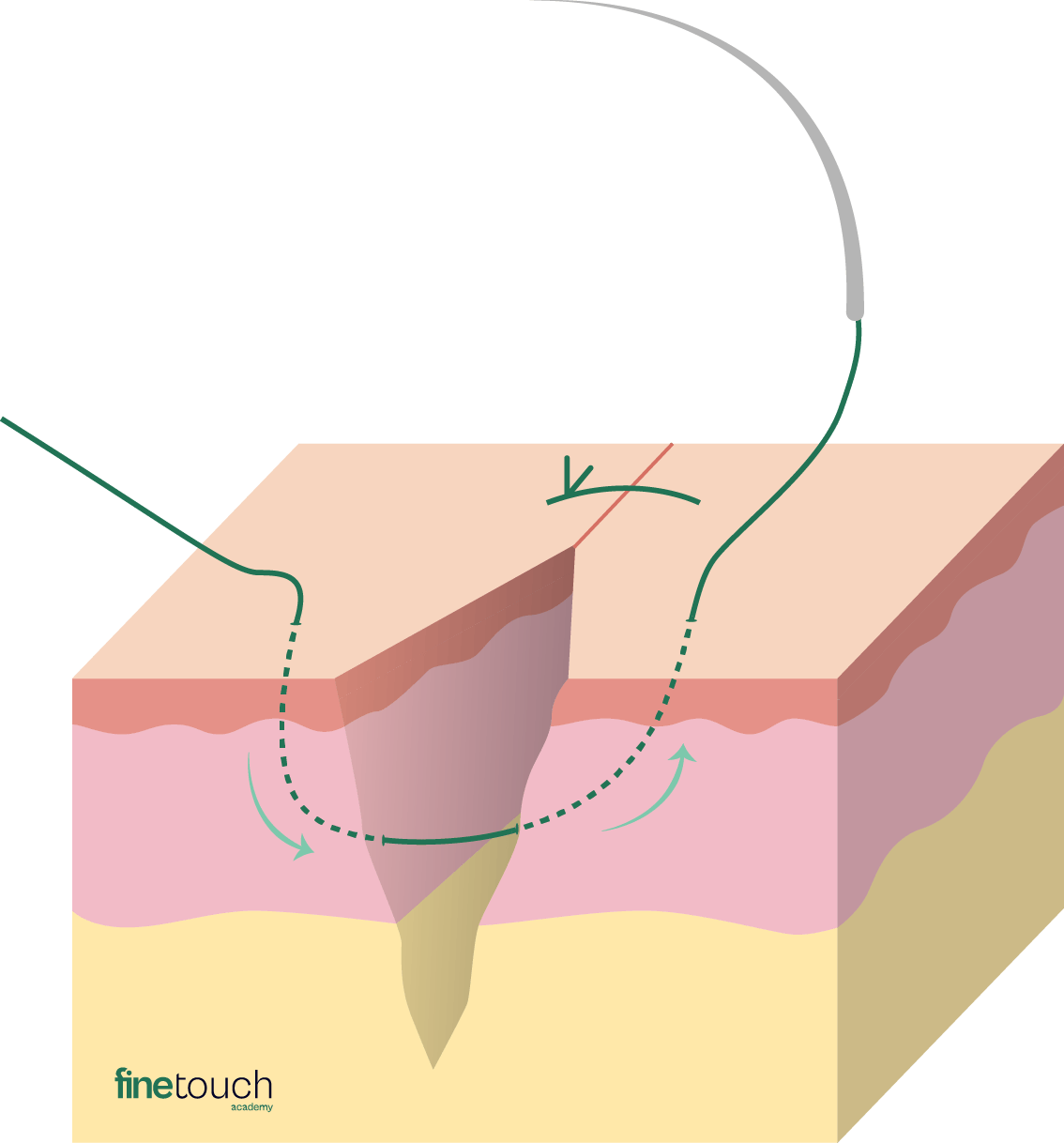 - Ce point peut être utilisé en complément d’une suture en profondeur afin d’ajuster plus précisément l’alignement du derme.